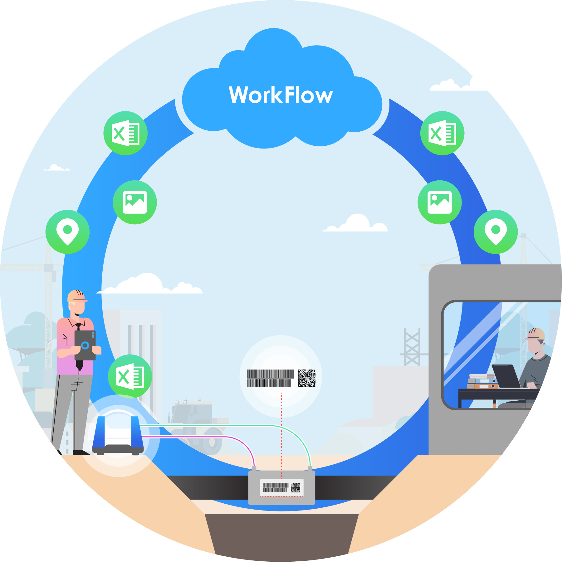 Paperless, in real time, with secure encryption: WorkFlow Mobile transfers all data to the WorkFlow cloud, where the data is immediately sorted, processed and stored. The corresponding protocols can be accessed anytime and anywhere by anyone who is authorised to do so – and by no-one else.